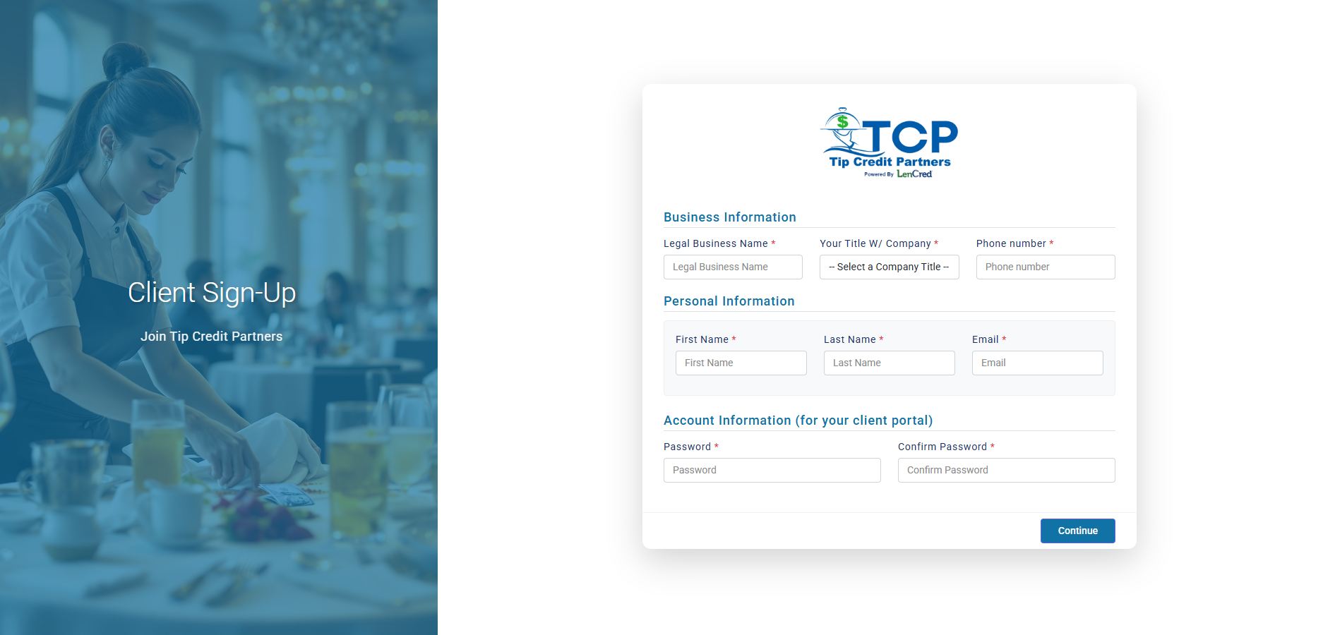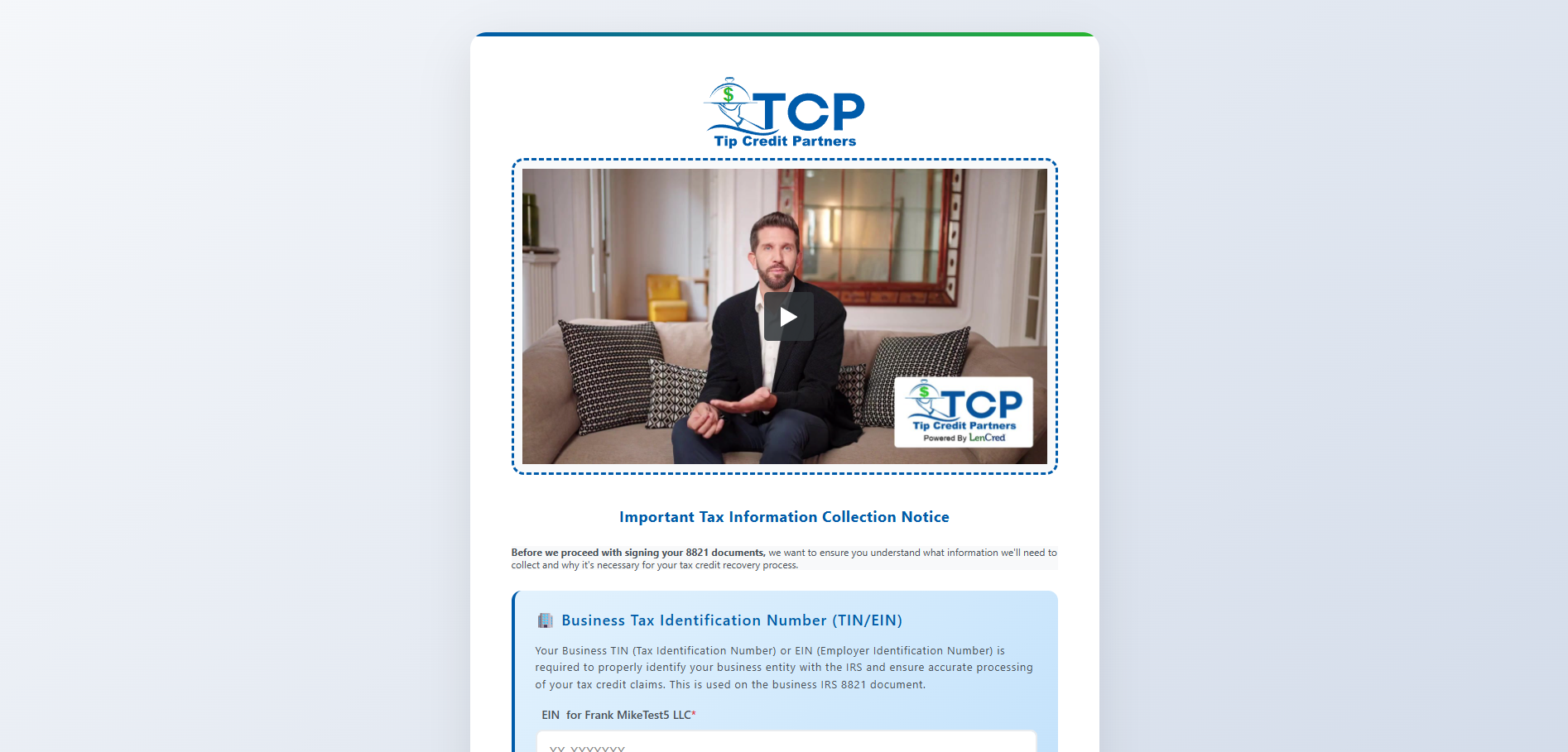 Enter your business information and create your secure portal login. This gives you access to all required documents and updates.