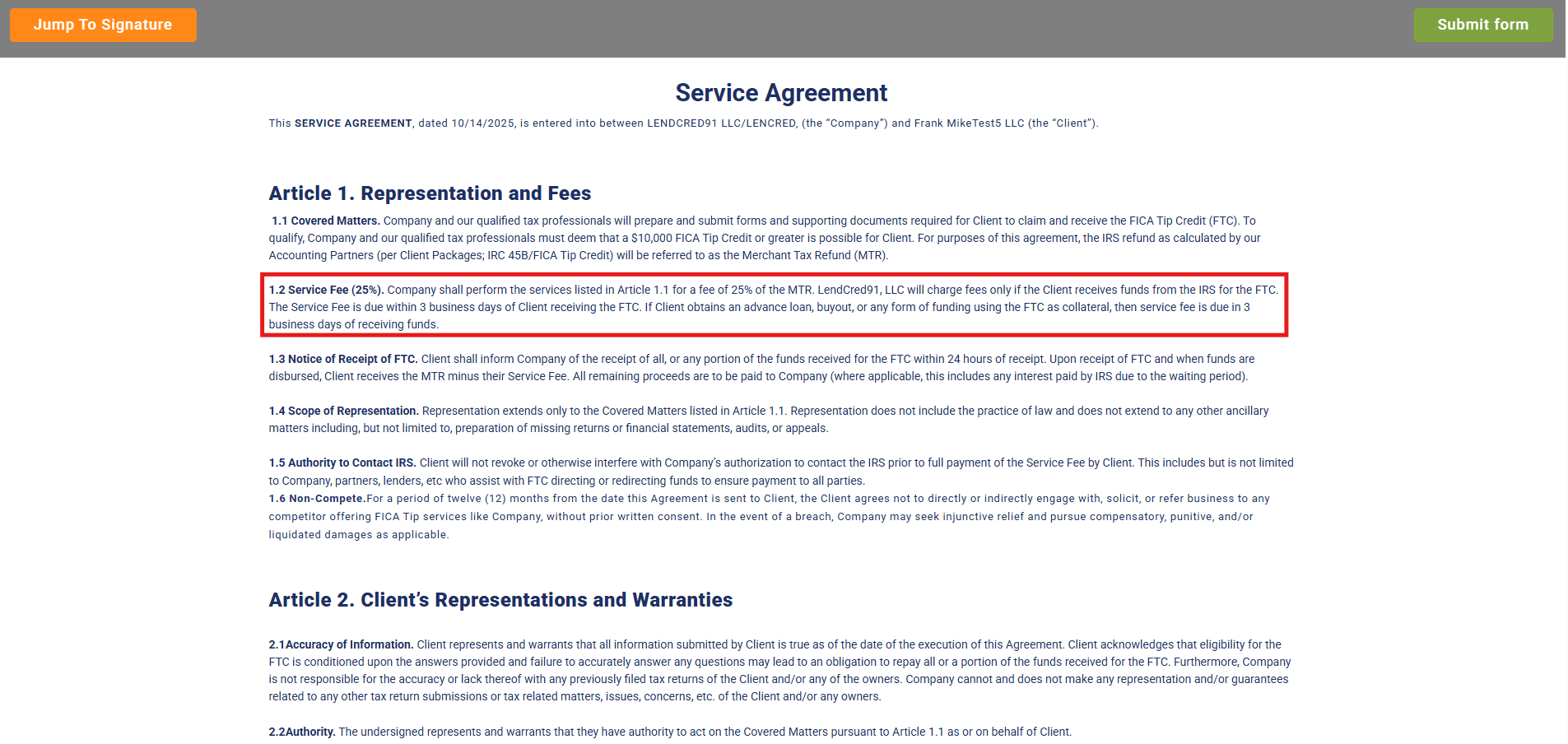 Step 2 — Sign the Service Agreement