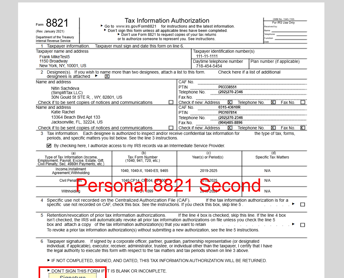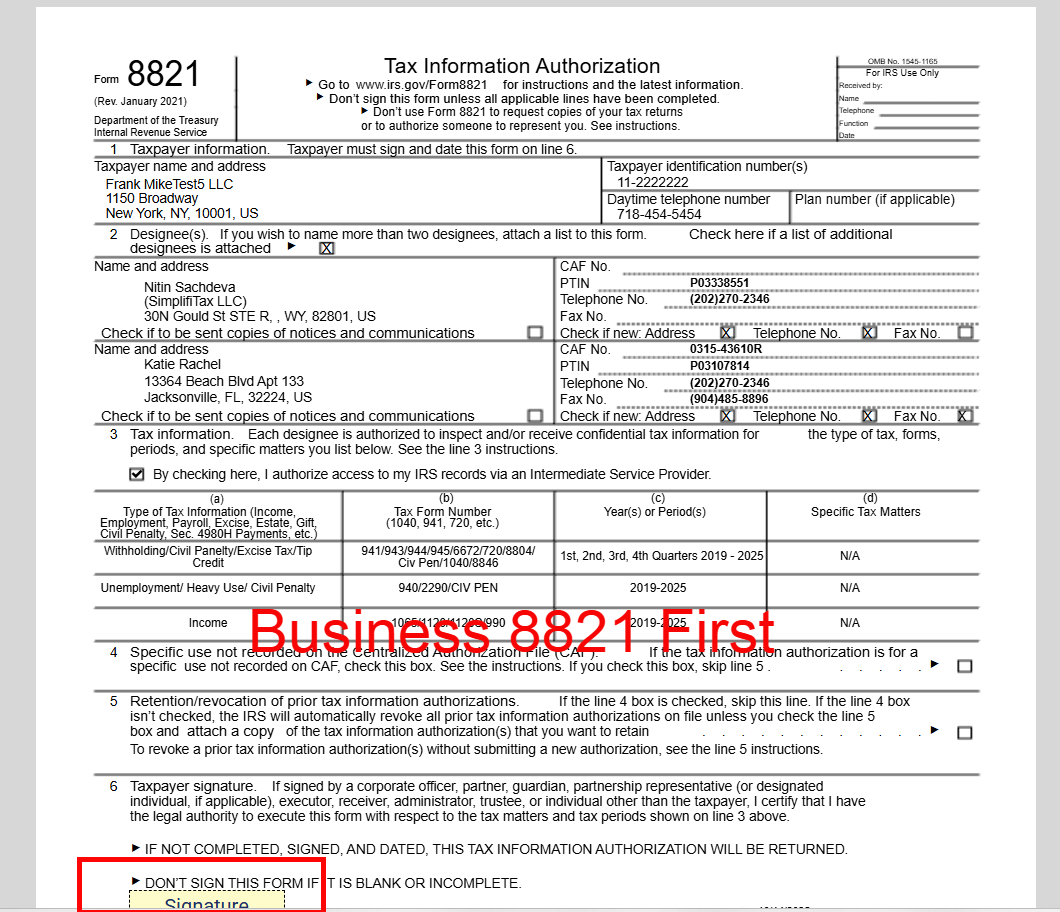 Step 4 — Upload Form 8821 (Business + Personal)